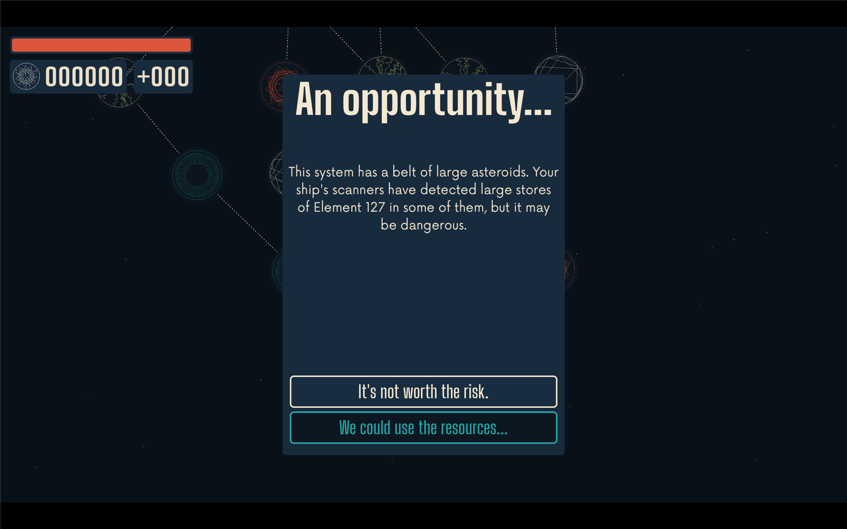Element 127 is a game about winning - or maybe more accurately, not losing. It's very easy to lose; you only have so much health, and crashing into a planet will take away all of it.